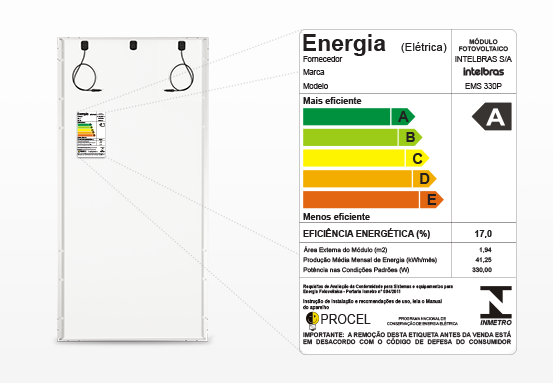 O módulo fotovoltaico EMS 330P é registrado conforme portaria nº 004/2011 do INMETRO.