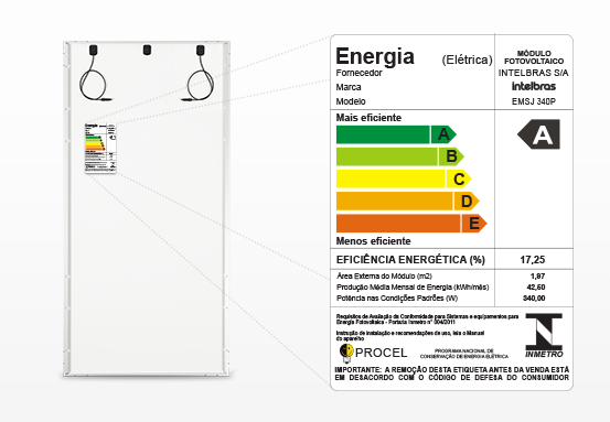O módulo fotovoltaico EMSJ 340P é registrado conforme portaria nº 004/2011 do INMETRO.